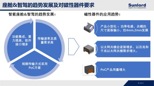 从系统演进方向看,功能集成度持续提升、算力平台不断升级,以及高速数据与视频传输的大规模应用,已成为智能座舱与ADAS发展的共同特征。集中式计算架构、高速以太网、高清视频及多传感器融合的广泛应用,使整车对供电稳定性、信号完整性及电磁兼容性的要求显著提升。这一趋势直接推动了小型化、大电流磁性器件需求的快速增长,同时,以太网通信接口、摄像头PoC等相关磁性应用的用量也在持续放大,基础器件的重要性被进一步凸显。