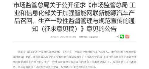 三、《关于加强智能网联新能源汽车产品召回、生产一致性监督管理与规范宣传的通知(征求意见稿)》