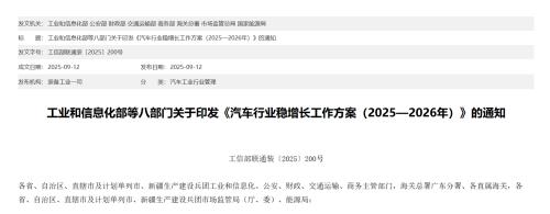 为应对汽车产业面临的内需增长动力转换与海外竞争加剧等挑战,工业和信息化部等八部门于2025年9月联合印发了《汽车行业稳增长工作方案(2025—2026年)》。这份方案的核心,是在巩固电动化领先优势的基础上,为产业未来两年的发展设定清晰的路径,其目标不仅在于实现“量的增长”,更着眼于推动“质的提升”。