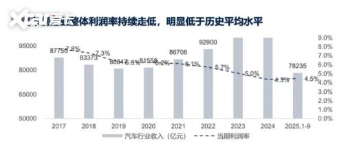 2025年,中国汽车行业的竞争格局发生了深刻变革,延续三年的价格战逐渐退潮,行业从恶性内卷转向理性竞争,价值重构成为核心主题。年初的"限时一口价""直降X万"等价格战手段席卷市场,这种无序竞争很快引发行业反思。数据显示,2025年前三季度汽车行业利润增长仅为3.4%,低于下游工业企业6%的平均水平,比亚迪、吉利等头部企业均出现“增收不增利”的现象,这种盈利压力倒逼企业重新审视竞争策略,竞争逻辑从“降价换市场”向“技术拼价值”转变。