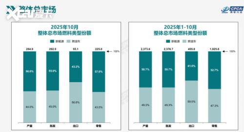 工业和信息化部等八部门联合印发的《汽车行业稳增长工作方案(2025-2026年)》为行业锚定了明确方向。截至11月底,全国汽车累计销量达3123.1万辆,完成全年3230万辆目标的96%,提前锁定"稳增长"阶段性成果。新能源汽车表现更为亮眼,1-11月销量接近1500万辆,逼近1550万辆的年度目标,渗透率从2024年的35%跃升至接近突破50%,10、11月新能源销量更是连续突破50%大关。这组数据背后,是自主品牌与新能源势力的双重崛起,更是中国汽车产业转型升级的生动写照。