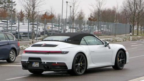 随着硬顶版本的正式发布,保时捷全新911敞篷版的测试也进入了最后阶段,官方毫不隐藏的测试车各种被海外媒体曝光,近期就有白色、绿色和黑色三种配色,其中黑色的软顶还是骚气的红色材质。从谍照中不同的排气也可以看出,此次911敞篷版同样有卡雷拉S和4S版本一同上市,动力上应该也一样是采用3.0L水平对置涡轮增压发动机,输出450马力和530牛米的性能参数。