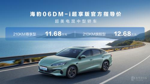 【太平洋汽车新车频道】1月9日,比亚迪海洋网旗下中型插混家轿——海豹06DM-i超享版宣布加推两款长续航车型。新车新增210KM尊享型与210KM旗舰型,官方售价分别为11.68万元与12.68万元。此次升级聚焦“超享”体验,通过搭载云辇-C智能车身控制系统、提升纯电续航至210km、并新增多项豪华舒适配置,旨在重新定义高品质插混家轿的价值标杆。