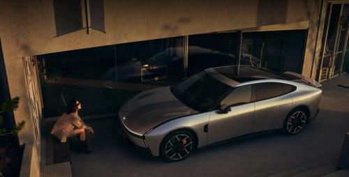 启境的猎装轿跑目前只有一些伪装车和一张侧面的渲染图露出,看起来跟尚界Z7的设计元素倒是有些相像。