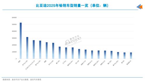 当然,仅靠海鸥远不足以支撑其庞大的销量体系。盖世汽车产业大数据显示,比亚迪旗下年销量超过10万辆的车型多达十余款。年销量在30万辆以上的还有宋Plus DM;年销20万-30万辆区间的有元系列、秦Plus DM、海豚、宋Pro DM等多款产品;年销10万-20万辆区间的也有海狮05 EV、秦L BEV等数款产品;另有数款车型年销量接近10万辆规模。