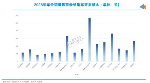 从2025年车企销量TOP15的整体情况来看,位居前列的比亚迪、吉利、奇瑞等车企,都是通过“多品牌、多产品”战略实现了对细分市场的收割。即便仍然存在所谓的主销车型,但其在企业总销量中的占比,已明显低于早期“爆款即全部或大部”的阶段。