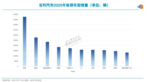 其中,星愿是吉利最畅销的车型,2025年销量接近50万辆,占比约15%。同时,星越L、缤越系列两款车型年销量均超20万辆,还有博越L、熊猫mini等多款车型年销量超过13万辆。吉利在主要细分领域都有一到两款车型支撑,进而形成了集团军式的产品攻势。