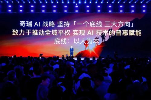 此次AI之夜上,奇瑞正式发布了全域AI战略,其核心框架被称为“一个底线,三大方向”。
