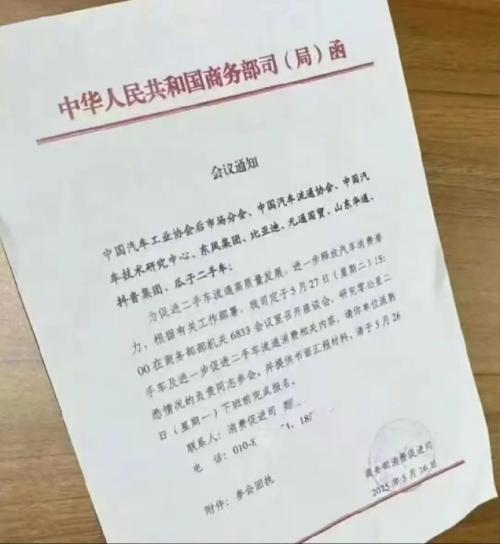 昨日,外媒曝出一条劲爆消息。中国商务部紧急召集中国汽车工业协会(CAAM)、中国汽车流通协会(CADA)、车企及二手车交易平台,就近期愈演愈烈的“零公里二手车”现象展开研讨。相关会议通知也被曝出,从通知内容来看,比亚迪和东风汽车作为车企代表,参与此次会议。