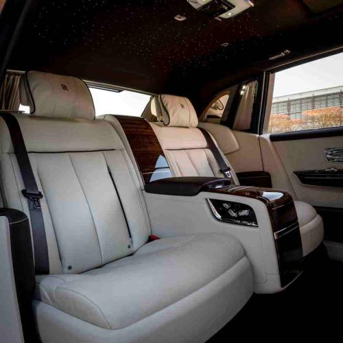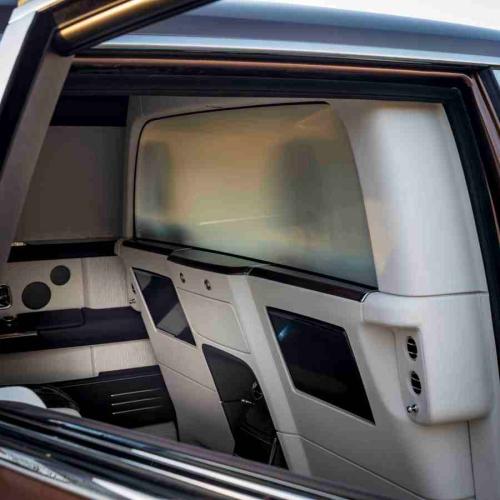 将在本届上海车展亮相的这台幻影私享密境特别版,外观采用低调而富有质感的Bespoke高级定制古铜色与缎银色双色调外漆,彰显出私密奢华的高贵特质;内饰设计则使用暗红色和贝壳白,营造出庄重高雅的仪式感。通过一键启动的电控隐私玻璃隔屏可将前后座舱隔离开来,为乘客创造私密奢华享受。