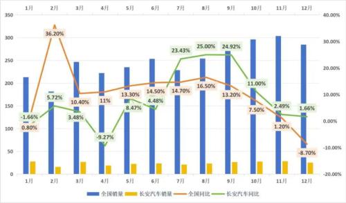 实际上,长安汽车去年的戏剧性表现还不止于此。虽然长安汽车在去年下半年强势开启上升通道,并且全年取得8.5%的正增长,还在二三季度开启了猛烈的新品攻势。但是,从全年的全品牌车型销量走势和市场表现来看,仍面临着产品线广而不爆的现象,缺乏现象级引领车型。