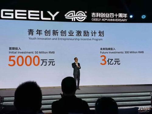 与这项长期培养计划同步推出的,还有真金白银的激励:吉利启动了青年创新创业激励计划,首期投入5000万元,未来计划总投入达到3亿元。