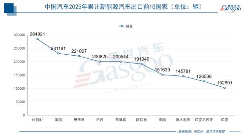 新能源汽车出口指向高质量与高价值市场。新能源汽车的出口目的地,更集中地反映了这一高质量发展趋势。2025年全年,中国新能源汽车出口前五大市场分别为比利时、英国、墨西哥、巴西和菲律宾。