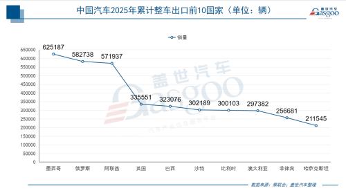 传统主力市场承压,新兴市场与发达市场并进。俄罗斯市场的变化最具代表性。尽管俄罗斯国内汽车零售量下滑不大,且中国品牌如吉利、长安、奇瑞、比亚迪等在俄表现依然坚挺,但基于对地缘政治风险的审慎评估,中国车企主动调整了出口策略。2025年全年对俄出口量出现较大幅度下降,使其在累计出口排名中从以往的榜首位置滑落。这并非竞争力削弱,而是中国车企全球化运营中风险控制意识提升的主动作为。