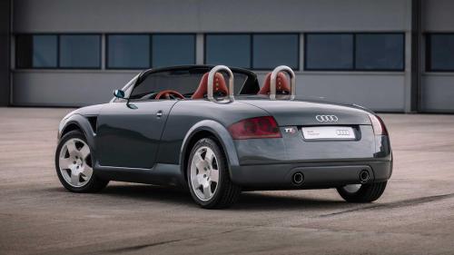 奥迪TT Roadster二十周年纪念版车型基于现款奥迪TT Roadster打造。外观方面,新车采用了水泥灰色的车漆,并配备了造型简洁的五辐式高光轮圈和特殊造型的排气,以此来致敬同样配备灰色车漆和五辐轮圈的初代奥迪TTS Roadster。