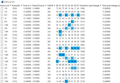 对于逆向工程和汽车黑客,Wireshark插件启用了功能强大的“ CAN Live”跟踪视图。这将为每个CAN ID显示一行,并实时为每个ID的数据字节着色。它提供了一个极好的工具,可将CAN ID连接到物理事件,并识别专有CAN总线信号的位或者字节位置。有关更多信息,可以参考CAN总线嗅探器简介。