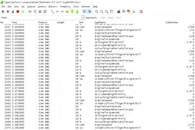 在Wireshark中轻松串流式传输原始数据以及DBC转换的CAN / OBD2数据