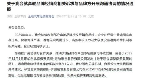 这种“口头重视、行动迟缓”的反馈,促使商会在2026年1月6日与1月23日,两次致函梅赛德斯-奔驰全球管理团队,请求其“高度关注中国市场渠道风险”,并从总部层面推动结构性改善。核心建议包括优化商务政策以遏制价格倒挂、建立公平的经销商退出补偿机制、统筹平衡短期销量与长期品牌价值。