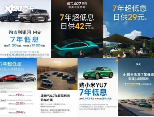 传统车企也迅速入局,东风奕派007、吉利银河M9、奇瑞风云T11等传统车企车型,也纷纷推出低首付、低月供的7年低息方案,确保在主流市场不落人后。