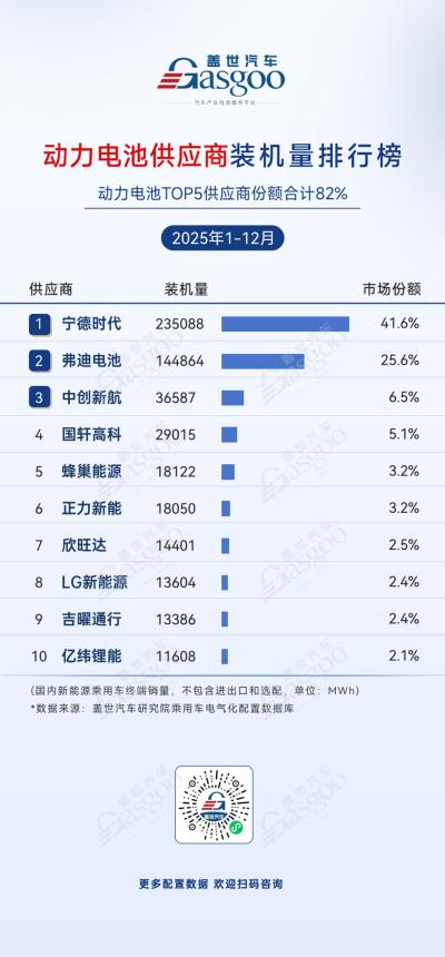 弗迪动力,2025年1-12月装机量1,604,425套,市场份额23.8%。