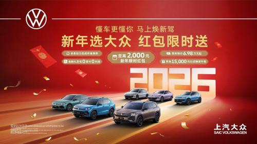 2026年1月,上汽大众大众品牌以近8.6万辆的零售成绩拿下合资单一品牌销量冠军,同时成为国内首个累计销量突破2600万辆的汽车品牌。为回馈消费者,品牌还将元旦推出的“新年五重礼”购车福利延续至2月15日,且春节期间提供全时服务保障,同步上线多款新春限定互动福利,以产品与服务双维度发力新春汽车市场。
