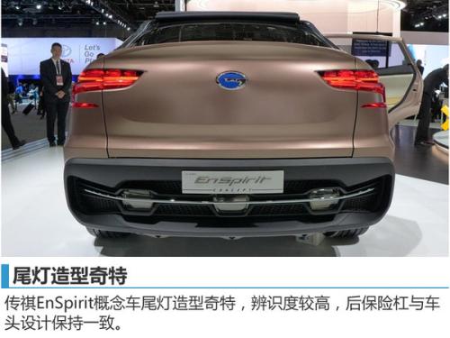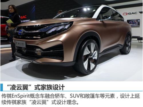 2017年北美车展上,广汽传祺展台带来全新跨界概念车。编辑从广汽传祺官方获悉,传祺EnSpirit概念车正式发布,新车侧身酷似宝马X6,内饰科技感十足,动力采用插电式混合动力系统。据官方透露,这款概念车的科技成果未来都会在量产车上实现应用。