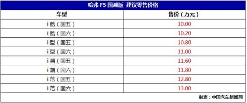 中国汽车新闻网讯4月28日,长城汽车宣布哈弗F5国潮版车型正式上市,售价区间为10-13万元。此次上市的新车共提供4个配置版本,每个版本分为国五和国六车型,其中国六车型还会升级换挡拨片和电子挡杆。