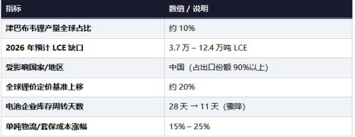•单吨碳酸锂的物流成本及套期保值成本预计上涨15%–25%;
