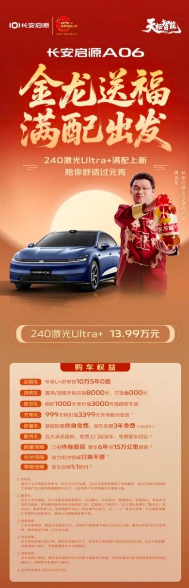 此次长安启源A06 240激光Ultra +的上市,以13.99万元的定价带来了配置与设计的双重升级,同时叠加多重限时购车权益与完善的用车保障,在10万- 15万级别的新能源车型市场中,进一步提升了长安启源A06系列的产品竞争力。对于消费者而言,在该价位区间选择增程式车型时,也拥有了一款配置更丰富、保障更全面的新选择,而长安启源此次的产品布局,也将进一步巩固其在新能源乘用车市场的布局