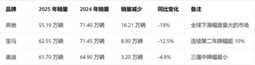 BBA在开年之初就开启新一轮降价销售,根源在于2025年的销量呈现集体下滑。