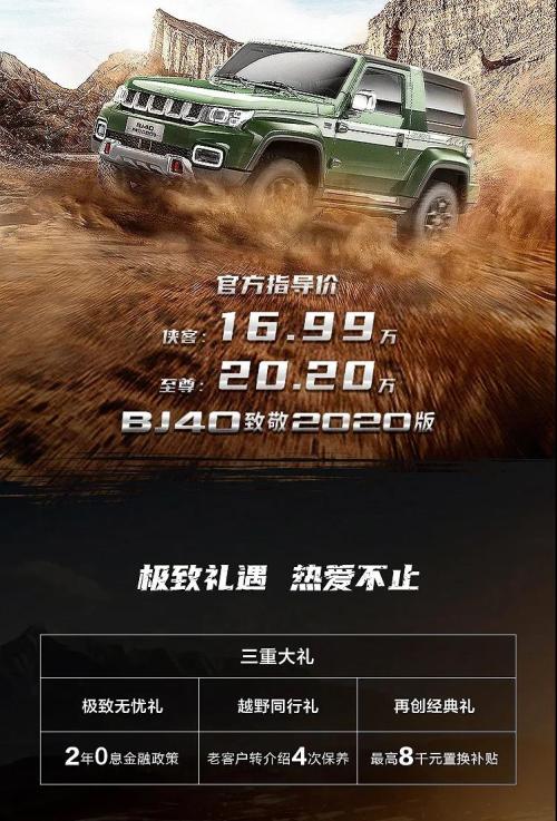 总体来说,BJ40致敬2020版的推出给越野爱好者一个更好的选择,同时也给出了一个真正值得动心的售价。