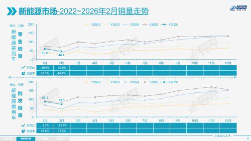 对于这一表现,乘联分会秘书长崔东树表示,由于市场因素影响较复杂,近几年年度销量“前低后高”特征较明显,受春节因素等干扰,历年2月零售同比波动剧烈,例如2019年-19%、2020年-79%、2021年373%、2022年5%、2023年10%、2024年-21%、2025年26%,“所以2026年的-25.4%属于历年2月增速剧烈波动的中间偏低状态”。