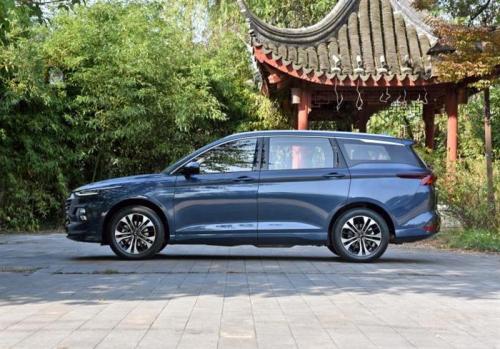 车身侧面,新车采用了经典的MPV车身形式,新车腰线从前翼子板延伸至尾部与后尾灯相连接,增加了车身的视觉长度。新车还采用了隐藏式B/C/D柱设计,营造出悬浮式车顶的效果。此外,车顶还用银色的镀铬装饰条修饰体现出流畅的车身线条。新车前后稍微突出的轮眉造型搭配双五辐式的轮圈,尽显时尚感。