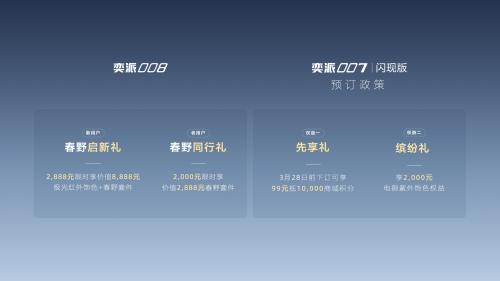 3月28日前下订可享99元抵10000商城积分的“先享礼”,以及价值2000元“电御紫”外饰色权益的“缤纷礼”,这套预订权益组合拳,显然意在为新车上市提前锁定年轻客群的购车意向。
