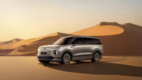 ID. ERA9X采用0.2mm极薄硅钢片,电驱最高效率达到97.5%。在800V碳化硅平台加持下,前后双电机可瞬间迸发380kW最大功率与660N*m峰值扭矩。值得一提的是,风阻系数低至Cd 0.253,并通过中国汽研“低风阻汽车”认证,在同级大型增程SUV中位居第一,进一步降低能耗、提升续航。