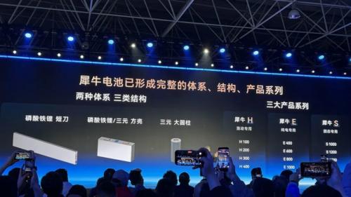 犀牛H混动电池,则包含具备20C放电倍率的E200系列,以及支持15分钟补能80%的H300系列。