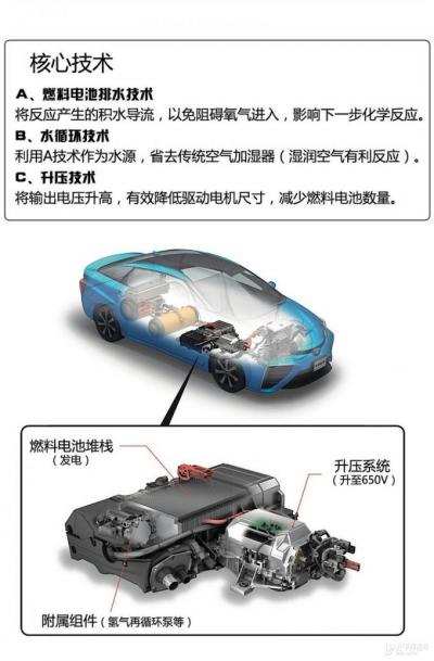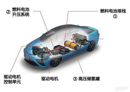 氢燃料电池汽车是我们今天要聊的主题,氢气进入燃料电池堆栈之后生产电力进而驱动汽车,是纯电驱动的。