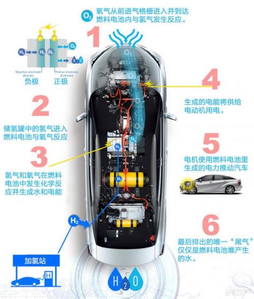 丰田是目前设计制造氢燃料电池乘用车经验最丰富的的厂家。2015年1月,丰田为了拉大家一起进入这个行业,宣布无偿公开5680件燃料电池汽车专利给业界,希望用这些花了丰田23年时间研发的核心技术能让更多企业入局平摊基建成本。