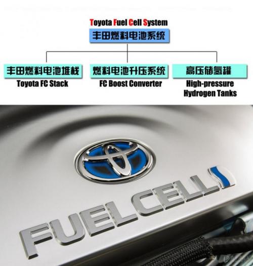 首先说明一点,“燃料电池系统”不一定要利用氢气来发电,只是目前比较通用的燃料是氢气罢了。丰田燃料电池系统有三大组成部分,下面已经列出,分别是:堆栈、升压、氢罐。