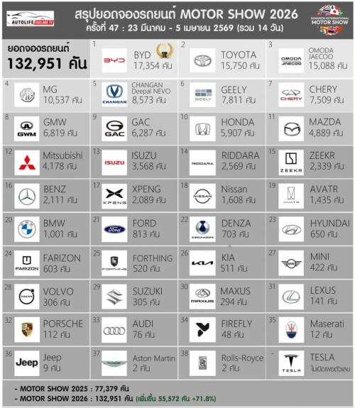 不久前结束的泰国曼谷国际车展,累计新车订单达到13.2万辆,较2025年的77,379辆同比暴涨71.8%,净增超过5.5万辆。