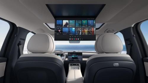座舱娱乐层面,车辆前排配备15.6英寸2.5K大屏,支持云端电竞功能;部分版本配备17.3英寸3K后舱吸顶影音屏,搭配23扬声器伯牙之音音响系统,最大功率1080W,可实现7.1.4.2全景声场效果。