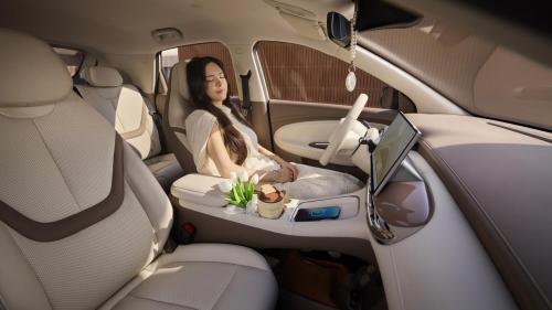 车内采用“浮岛绮境座舱”设计,中控台为“水韵浮岛”造型,提供浅米棕、焦糖咖两种内饰配色。座椅为云感样式,搭配U形独立头枕,座舱内还设置浮岛式开关、美颜柔光镜等细节配置,兼顾使用便利性与精致感。