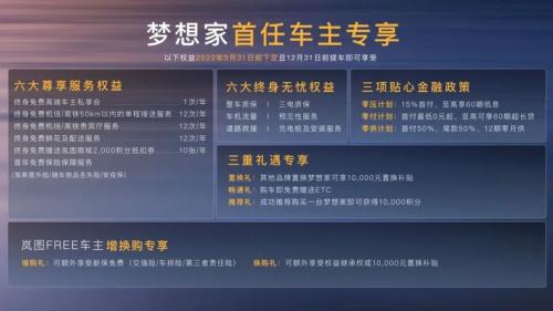 此外,岚图汽车还为梦想家七座版用户带来多项限时权益。8月7日前下单“家”系列的用户,可获赠价值20000元的专属升级包;8月7日前下单“想”系列的用户,可获得20000元的优享权,8月7日至12月31日下单“想”系列的用户,可以获得10000元的优享权;今年内下单“梦”系列的用户,可享受20000元优享权。