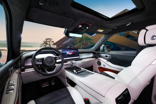 车辆内饰与舒适性配置面向家庭与商务场景优化,配备全员通风/加热/按摩纤云座椅、21个扬声器的7.1.4杜比全景声系统、5.4L智能冷暖冰箱、17.3英寸3K后排吸顶屏等装备,兼顾越野通过性与日常乘坐舒适性。