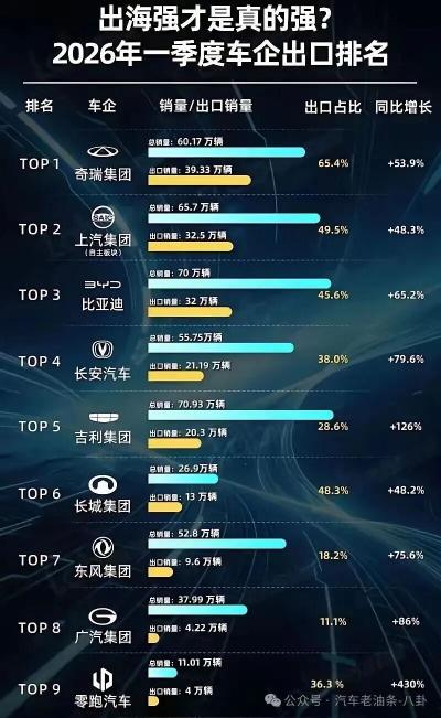 北京车展上老外的扎堆围观,是中国力量的直观展现;而一季度狂飙的出口数据与全球市占率,则是中国汽车主宰全球的硬核证明。在国内市场存量竞争加剧、内卷见顶的背景下,中国车企将成熟的产能、技术与产品投向全球,开启了有史以来最壮阔的出海浪潮。