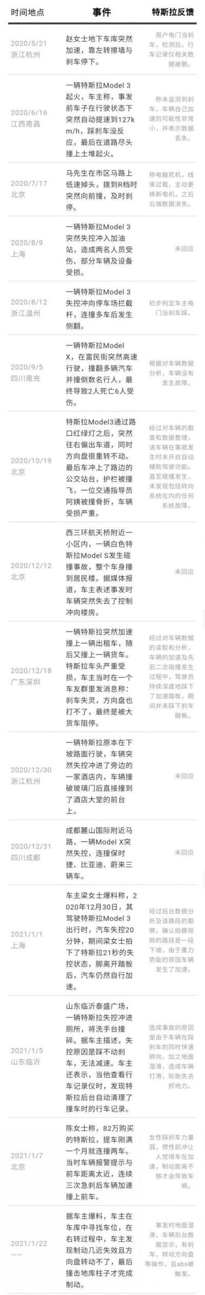 此次召回事件容易让人联想到过去的几起特斯拉“失控事件”,可能就是与Model 3以及Model Y的挡把设计有关。但笔者查阅了这些事故时,发现当事车主均表示自己踩踏了刹车踏板,而在特斯拉车型的控制逻辑上,只要车主踩踏了刹车踏板,主动巡航控制功能便会自动退出,理论上就可以避免事故了。但是有不少车主却表示踩下了刹车后,车辆并没有反应,也就是刹车失灵,因此本次召回事件并不代表特斯拉承认了过去的“刹车失灵”失控案件。