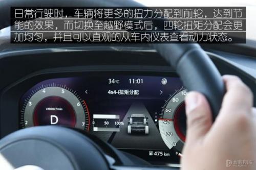 而四驱系统的电子响应快得出乎预料。在遇到大的坑洼导致一侧车轮出现空转时,系统会很快介入辅助制动,快速将动力分配至有抓地力一侧的车轮,并且还会调整前后轴的扭矩分配,让车辆整体的抓地力表现更好。毫不夸张地说,在智能四驱的辅助下,如今驾驶者真正需要做的,就是握好方向盘选择线路,稳定好油门,其它就交给系统即可。