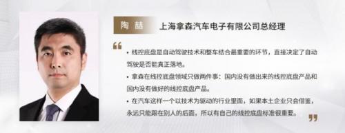 “对于智能汽车而言,随着自动驾驶水平的不断提升,底盘的安全性、电控属性会大幅提升,线控底盘将是直接影响汽车安全性、舒适性、操控性、通过性,甚至决定自动驾驶能不能真正落地的关键环节。”谈及发展线控底盘的重要意义,近日上海拿森汽车电子有限公司总经理陶喆在盖世汽车开展的C Talk高端系列访谈中如是说,而这也是拿森成立的初衷。