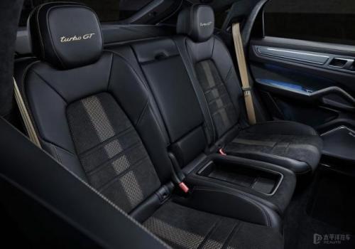 新车其他GT特色的设计包括纵向嵌入车顶扰流板的碳纤维侧板,以及可自主延伸的后扰流唇,该部件较Cayenne Turbo Coupé加大了25 mm,从而可在车辆达到极速时增加高达40 kg的下压力。新车的尾部造型包含一个抢眼的碳纤维扩散器。