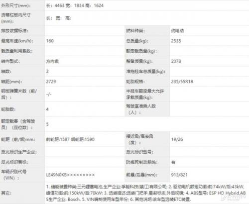 动力上,新车搭载了代号为EM0021/EM0022的前后双驱动电机,最大功率150kW/70kW;而与之匹配的电池包容量为66.5kWh,拥有486公里(NEDC综合工况)的续航里程。